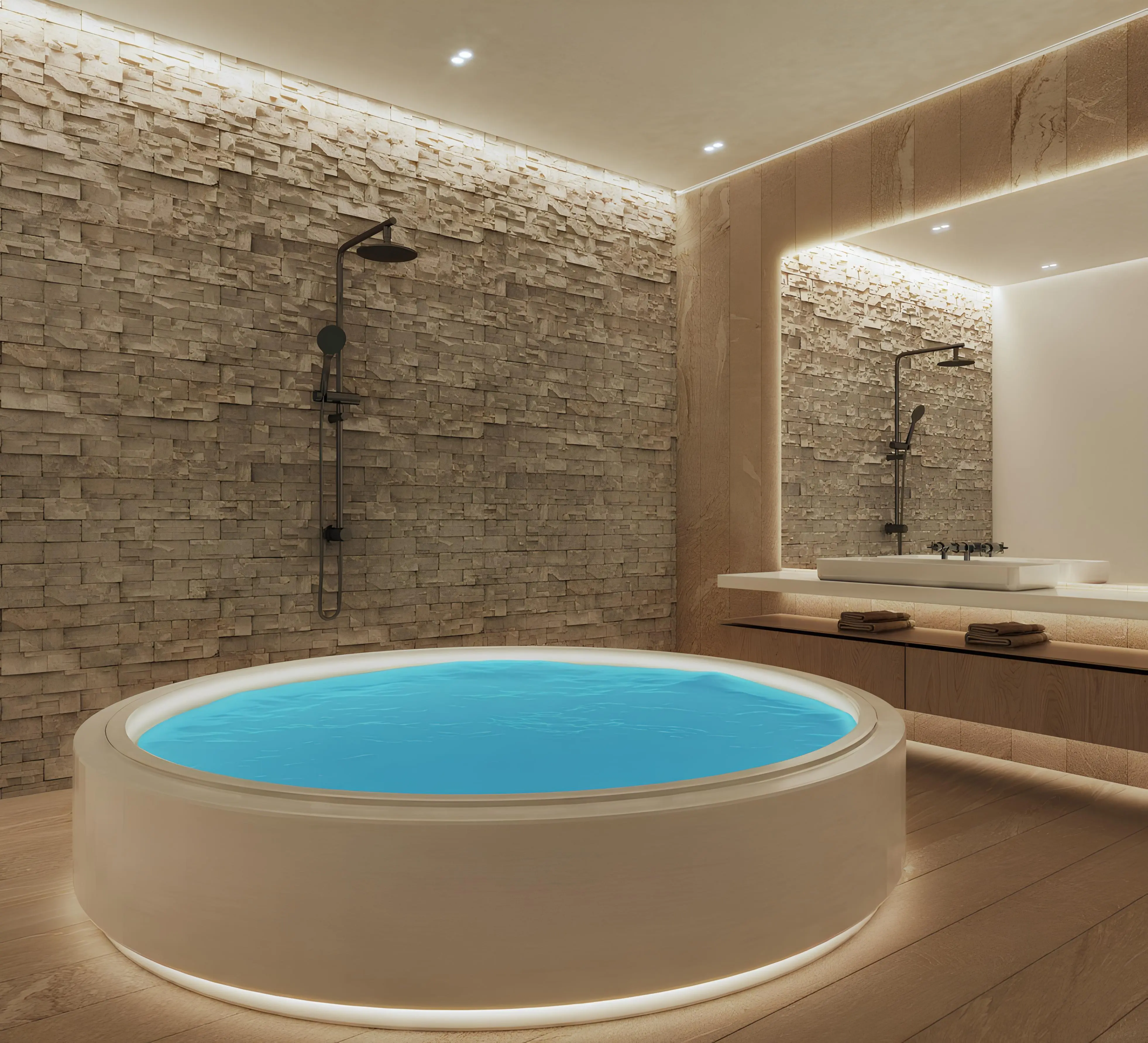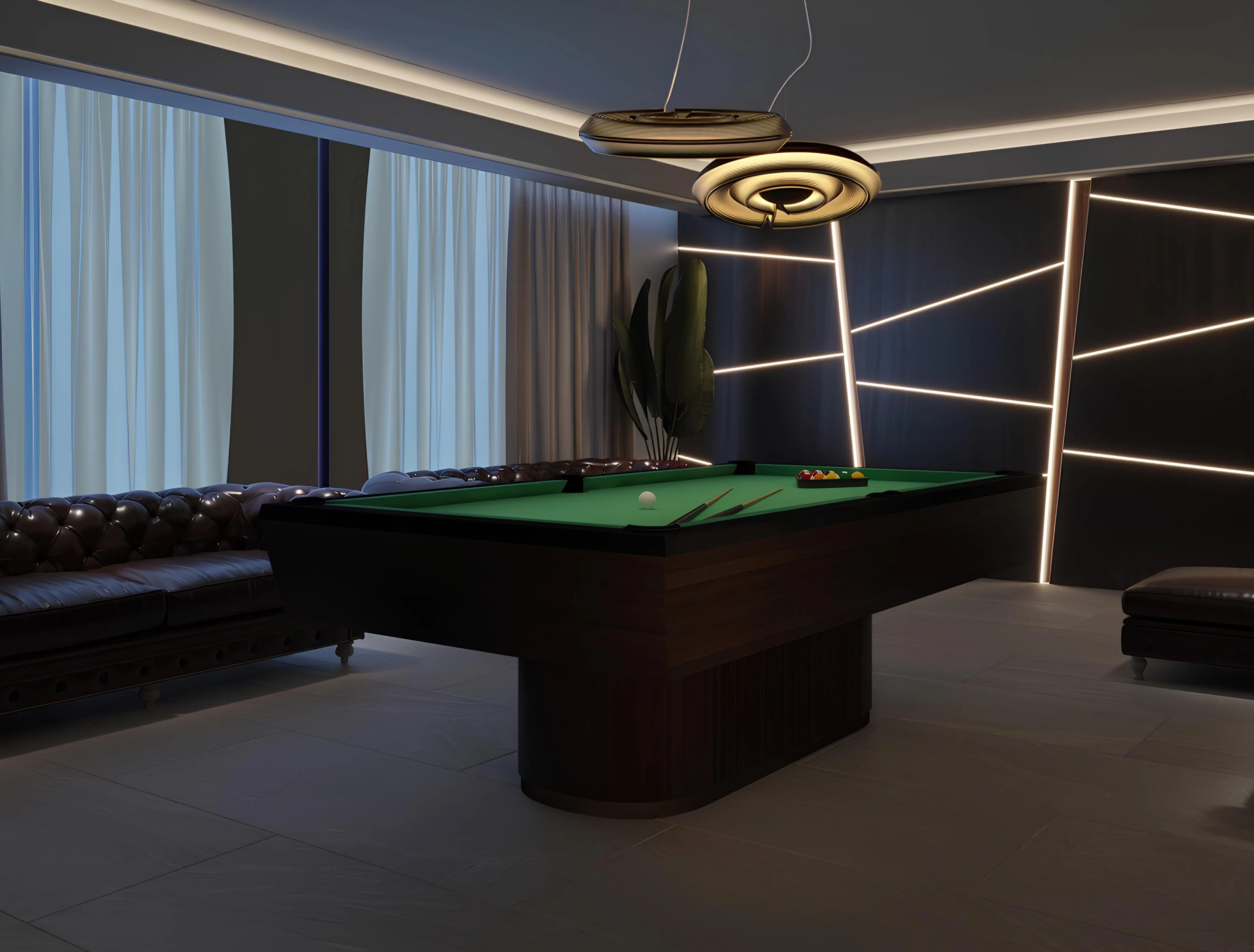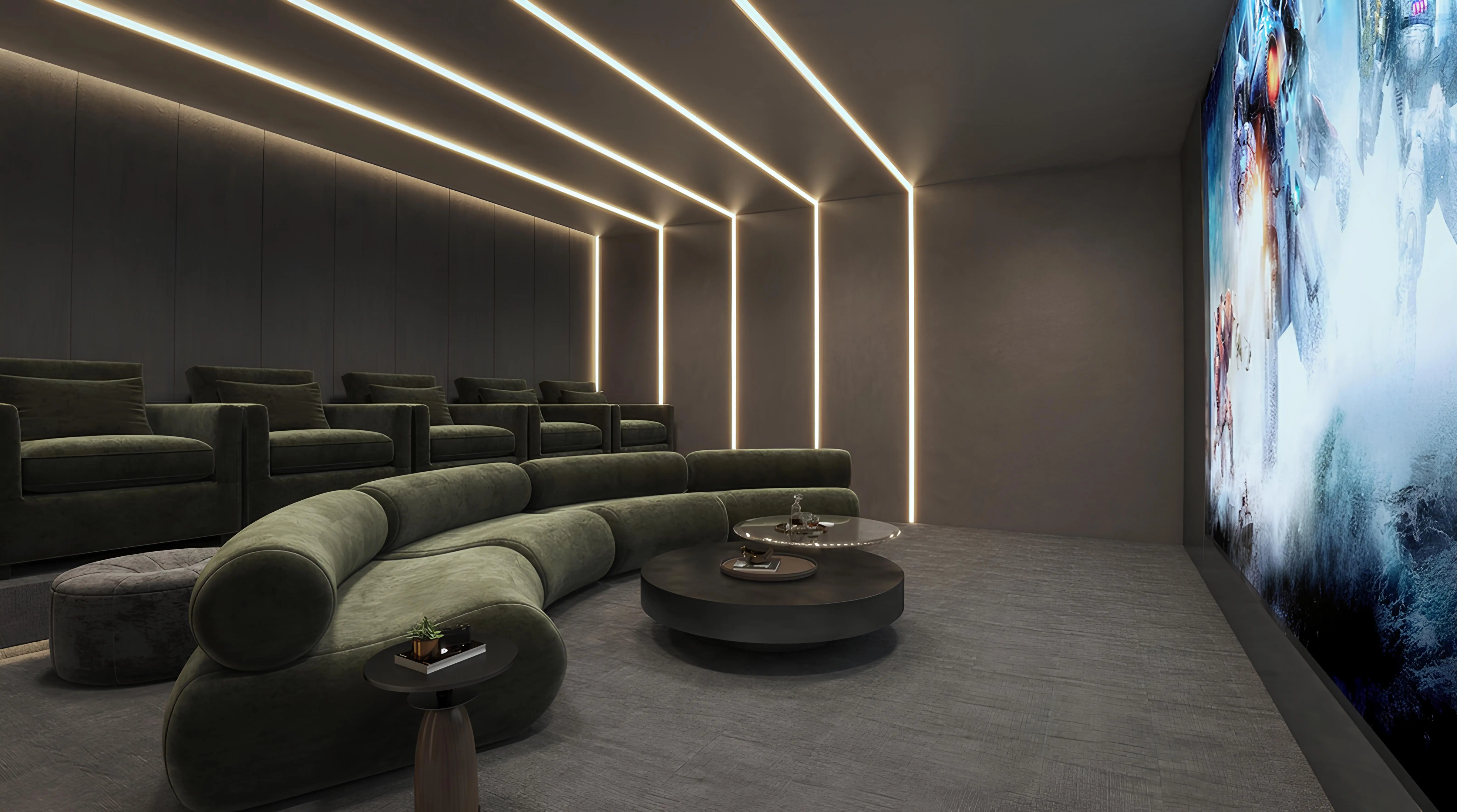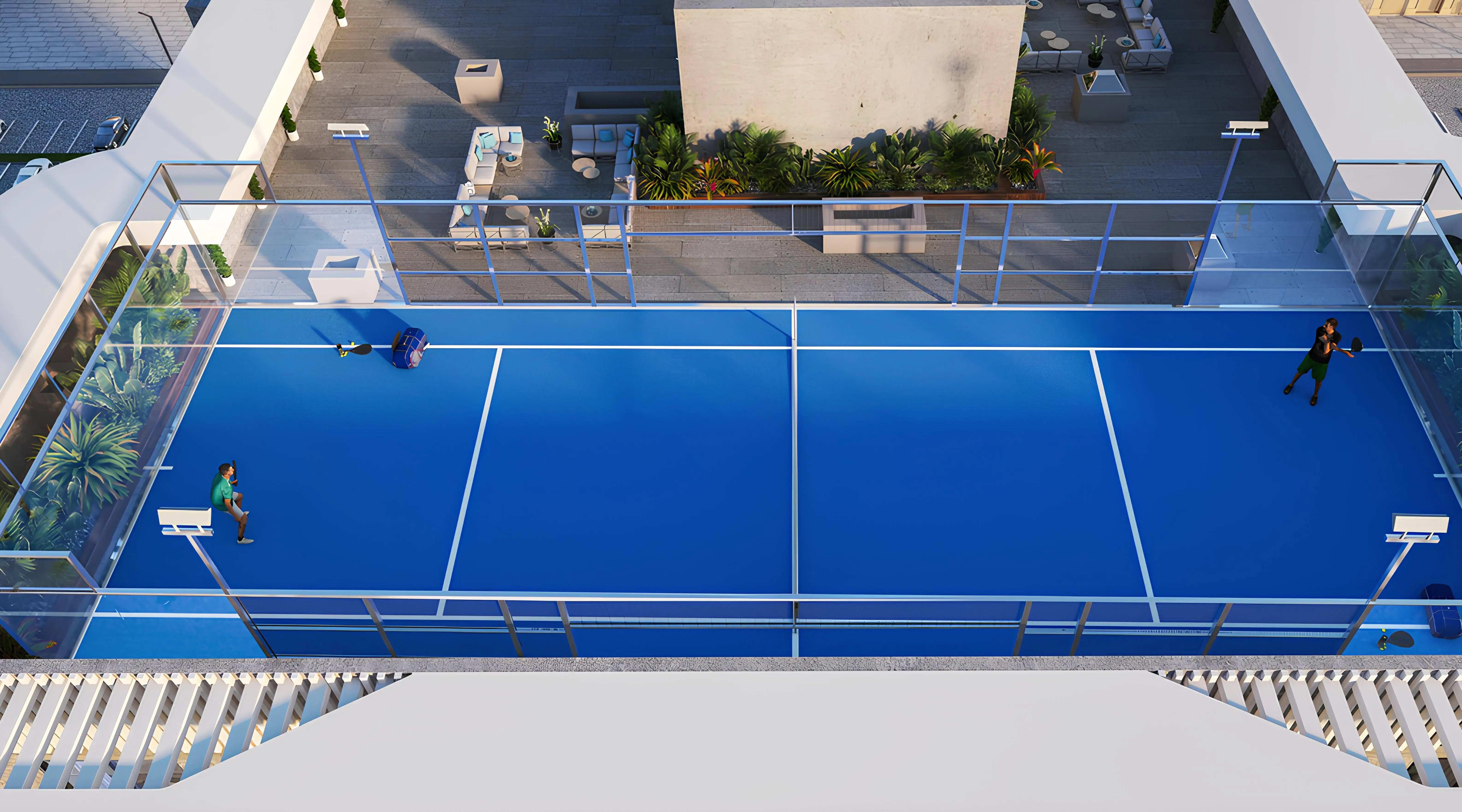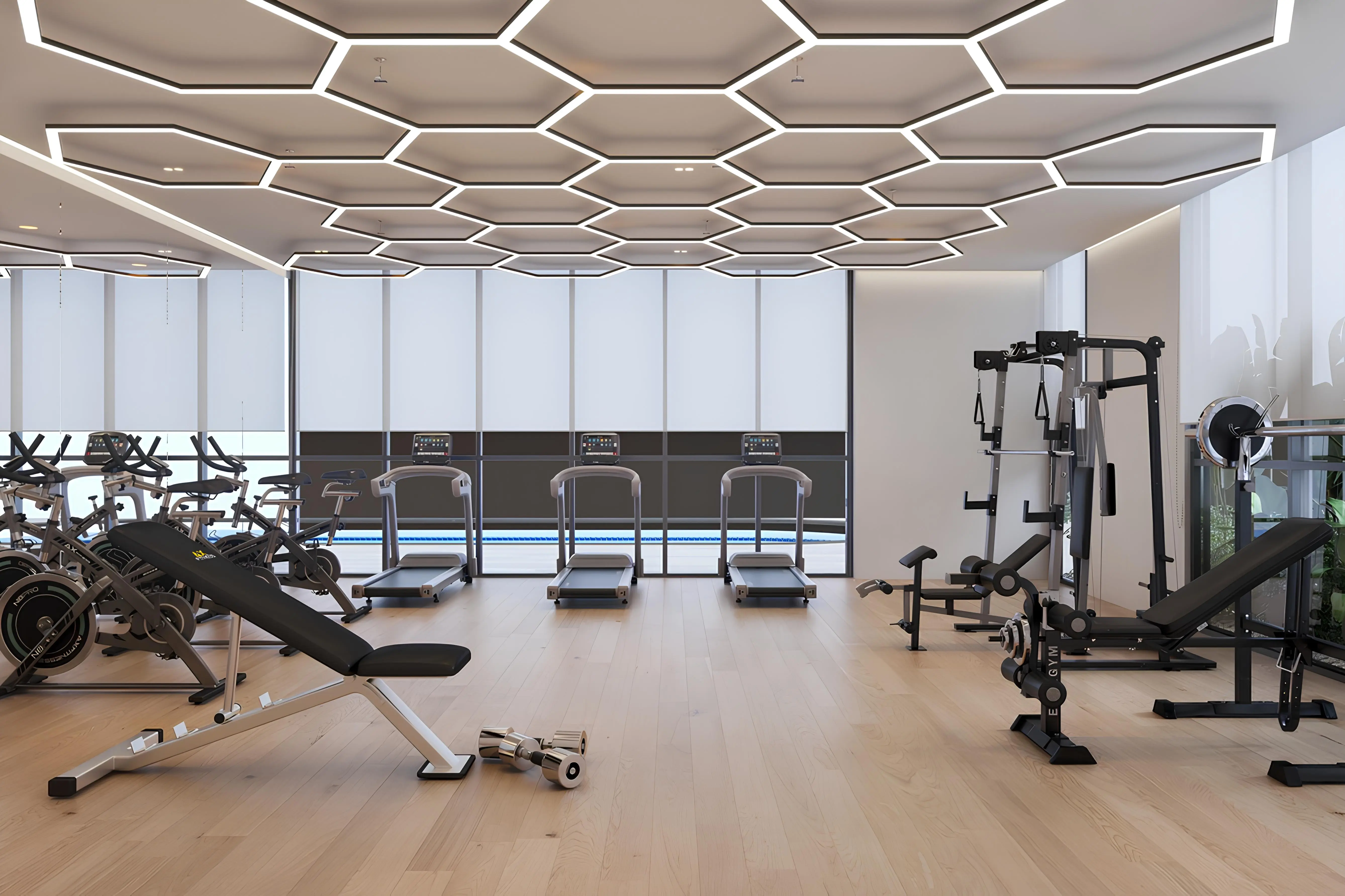 The complex offers its residents a wide range of amenities, transforming everyday life into a continuous enjoyment of comfort and coziness: a modern gym, swimming pool, barbecue area, sauna and steam room, jacuzzi, squash court, indoor cinema, meeting room, prayer room, security and video surveillance system, fountain, and a smart home system.