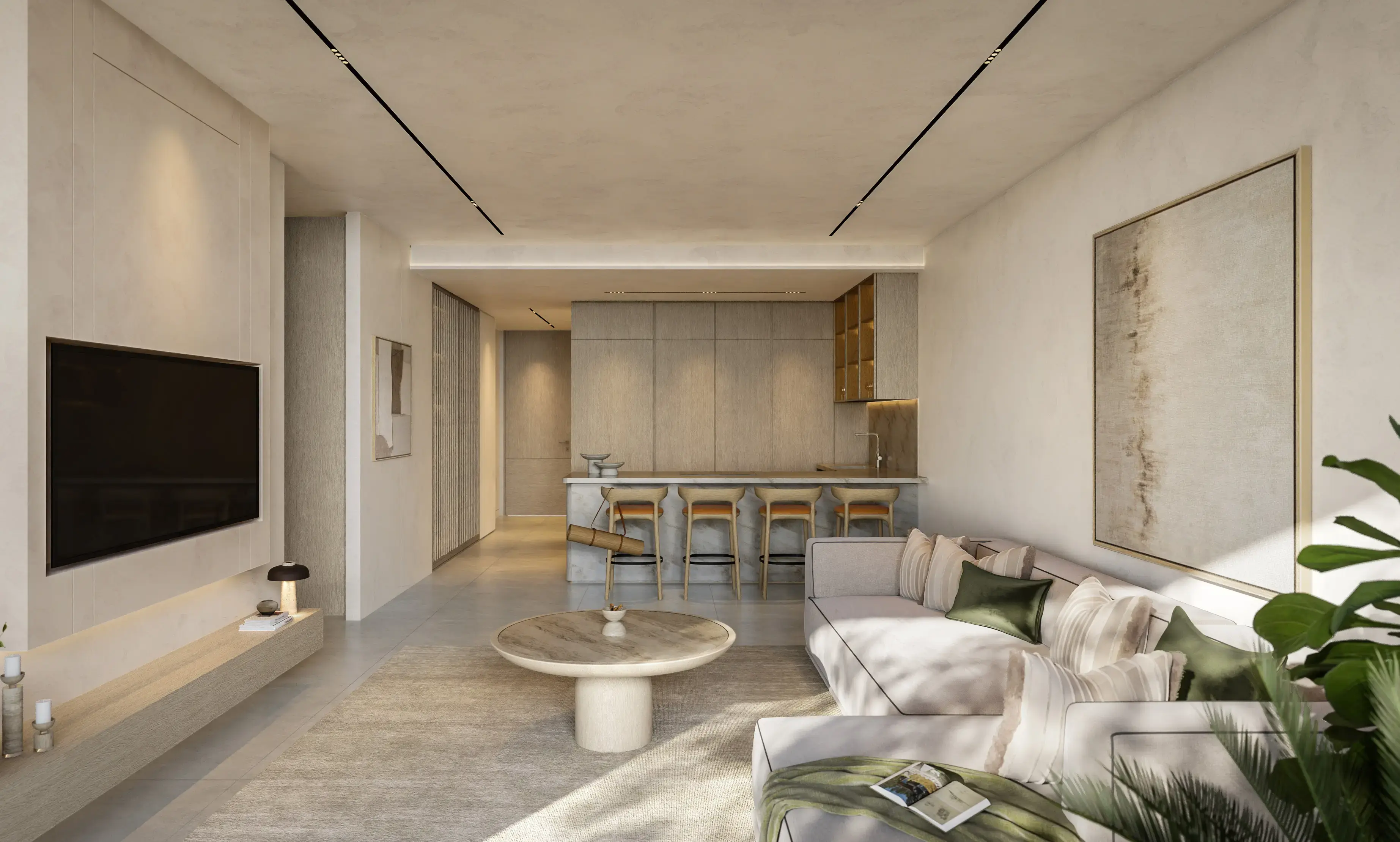 Avida Residences is an elite residential complex developed by IQUNA Properties, produced by Devmark, located in the prestigious Dubai Islands. The building is designed in a modern minimalist style with an emphasis on light, space, and connection with nature. The facades have panoramic glazing. The building consists of a ground floor, a podium, six residential floors, and a roof. The number of bedrooms varies from one to three. Two exclusive penthouses are also available for sale. All apartments have thoughtful layouts, high ceilings, and spacious terraces. The kitchens are equipped with branded appliances, the bathrooms are finished with natural ceramics and equipped with premium sanitary ware. Avida Residences is positioned as the first residential complex in the region focused on longevity. Key amenities include a swimming pool, a modern smart fitness center, a conscious movement studio, a specialized wellness spa, and more. Shaded lounges, coworking areas, workshops, and meditation rooms are provided for social activity. Personal longevity consultations, nutrition programs, wellness concierge services, and organic cleaning are available for residents. The complex is conveniently located: Dubai Islands Beach is a 3-minute drive away, the Waterfront Market is 7 minutes away, the DXB is 10 minutes away, Downtown Dubai and Dubai Mall are 12-14 minutes away, and Jumeirah Beach is a 20-minute away.