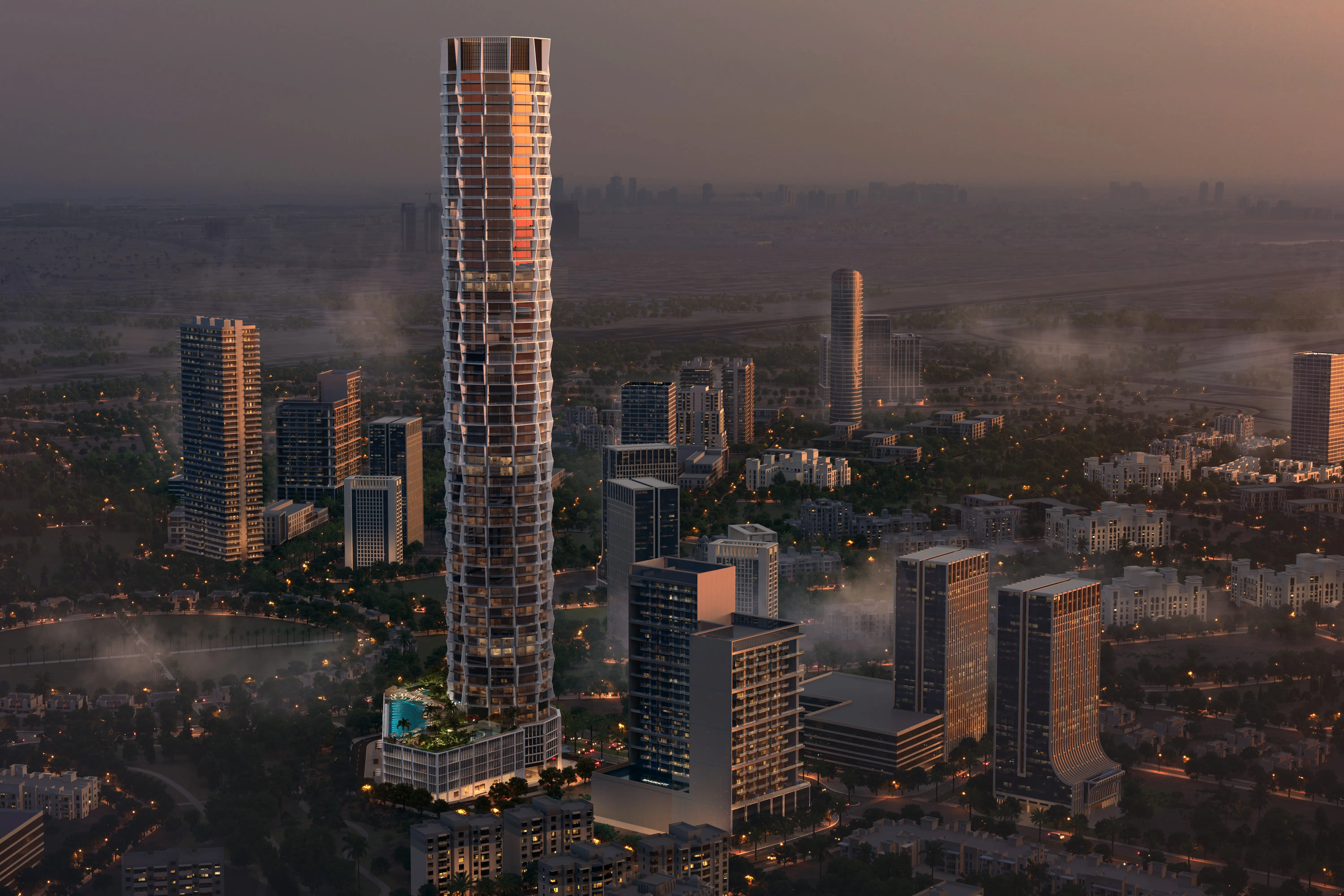 Binghatti Circle is a project by the developer Binghatti, located in Jumeirah Village Circle. The tower features two basement levels, a ground floor, four podium levels, fifty-eight residential floors, three technical levels, and three floors dedicated to infrastructure, topped with a roof level. It is considered the tallest residential tower in JVC. The collection includes studios and one- to three-bedroom apartments.