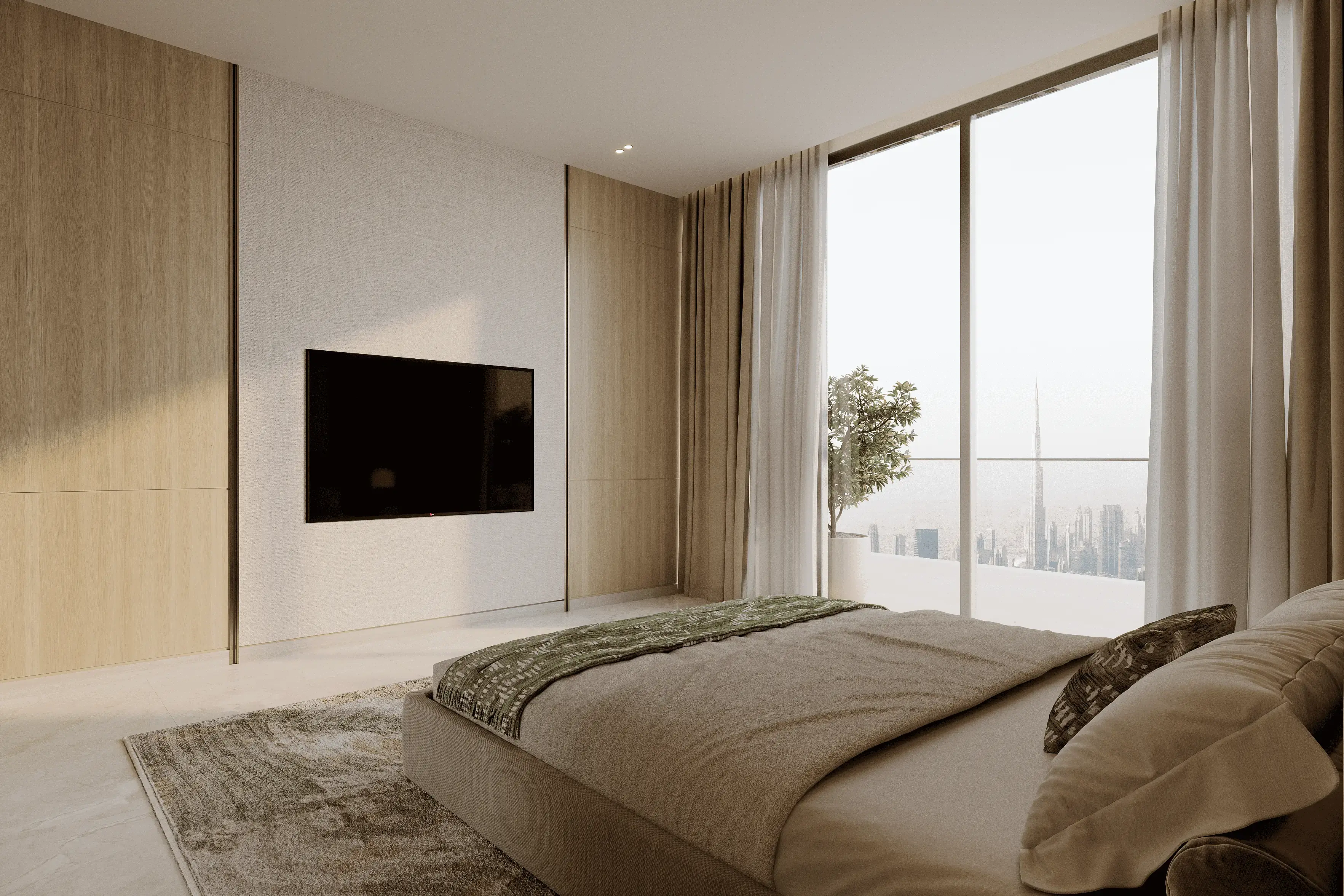Binghatti Titania is an architectural landmark in the heart of the Majan community, reflecting the bold style and technical excellence of Binghatti. The building includes three basement levels, a ground floor, four podium levels, thirty-two residential floors, a technical level, and a roof. The elegant tower, with its expressive façade illuminated by vertical lines, combines modern aesthetics with everyday comfort. The architectural concept of Binghatti Titania is defined by geometric precision and minimalist forms. The tower embodies a forward-looking approach to design, where every element supports the harmony between visual impact and functionality. The project offers studios and one- and two-bedroom apartments, as well as commercial spaces. Interiors are crafted in light tones to enhance space and comfort. Premium finishing materials and panoramic windows fill the rooms with natural light and openness. Residents can enjoy a wide range of amenities, including a fully equipped gym, pools for adults and children, relaxation zones with sunken seating, and landscaped areas for leisure and walks. The project’s location provides easy access to key city landmarks: five minutes to Global Village and IMG Worlds of Adventure, fifteen minutes to Dubai Mall and Burj Khalifa, and around twenty minutes to the international airports.