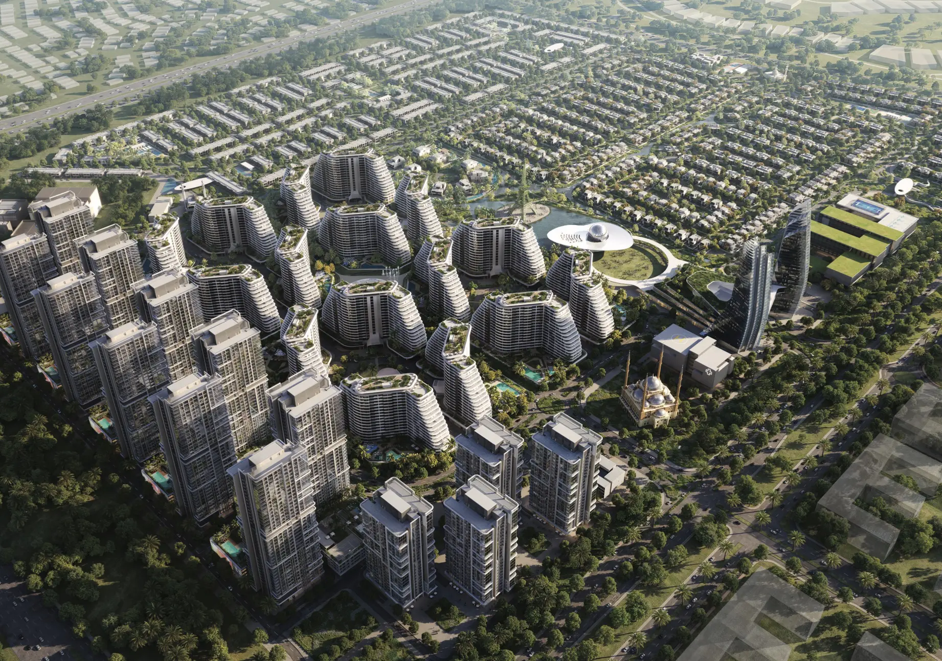 Cascada at Waada - multi-storey buildings of the large-scale Waada project, from the developer BT Properties, located in the prestigious Dubai South area, Dubai. The buildings attract attention with their elegant exterior finishes and smooth lines that perfectly blend into the surrounding landscape and include an basement floor, a ground floor and 16 residential floors, on which apartments with 1-3 bedrooms are located. The interiors are distinguished by excellent finishing quality and carefully thought-out design. Residents of the complex will be able to use various facilities, including community centers, a park area, a mosque, shops and a kindergarten. Proximity to important infrastructure facilities is an undoubted advantage of Cascada at Waada. In particular, Al Maktoum International Airport is only 9 kilometers away, Expo City Dubai is 21 kilometers away, and Ibn Battuta Mall is 38 kilometers away. Residents of the complex will also be able to easily reach such popular places as Global Village and Dubai Marina.