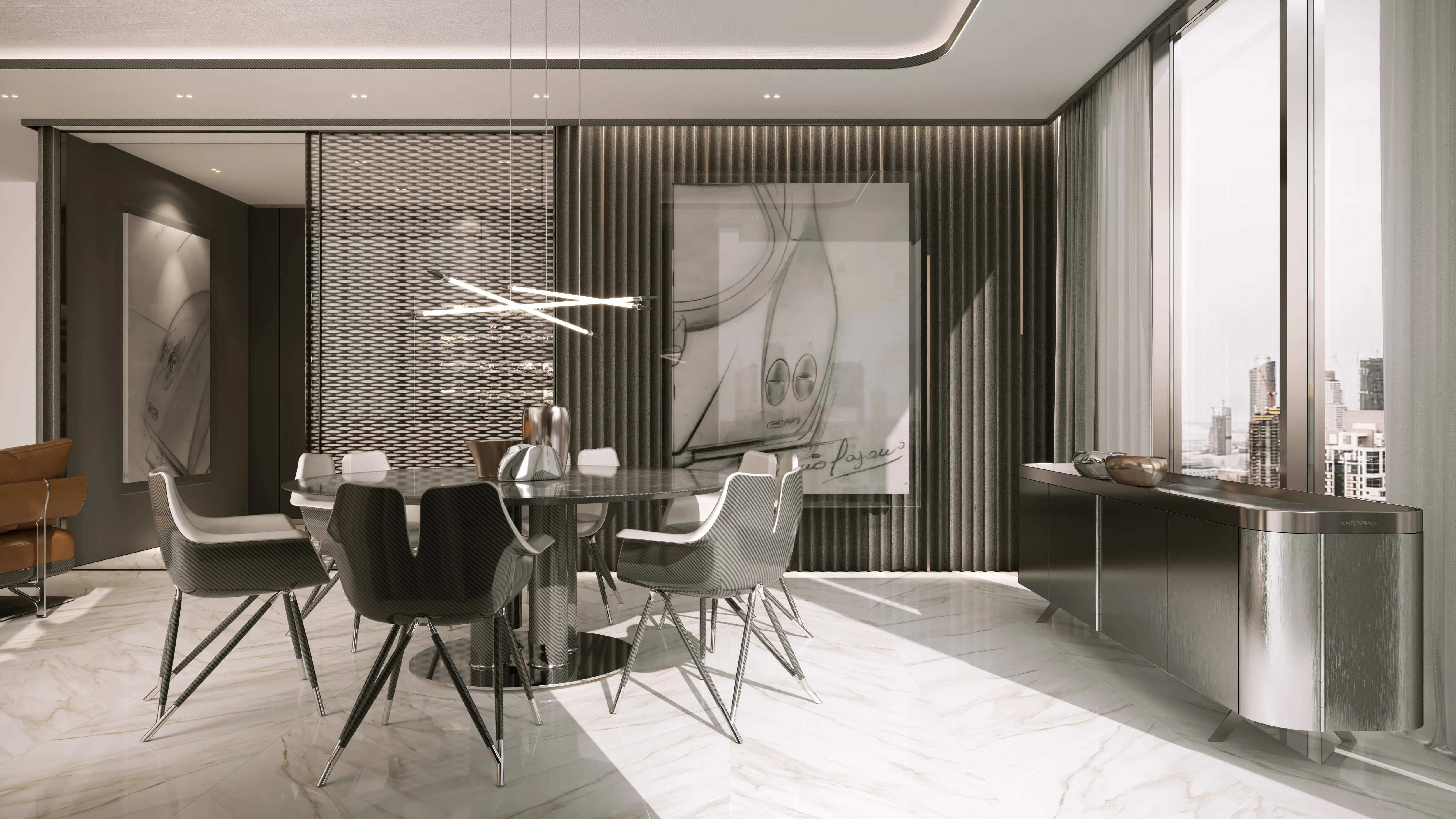 Davinci Tower by Pagani is an exclusive residential complex that consists of twenty residential floors, three basement floors and one ground floor. Premium-level complex from the developer DarGlobal, located in the business center of Dubai-Business Bay area. The building is located on the Dubai Water Canal, next to the main attractions of the city. The curved facade of the building, made in black, resembles the letter V in memory of the great artist Leonardo Da Vinci. From the windows of the apartment you can perfectly see the tallest building in the world — the Burj Khalifa skyscraper. Buyers are invited to choose fully furnished apartments with two, three and four bedrooms and private terraces. The interior of Davinci Tower by Pagani is dominated by light colors and uses only high-quality materials: natural marble and wood, while the kitchens are equipped with appliances of the world's best premium brands. For residents ' convenience, Davinci Tower by Pagani features a green oasis with a swimming pool and a gym on the roof. Davinci Tower by Pagani has excellent transport accessibility: the main road of the UAE Sheikh Zayed Rd is 4 km away. Downtown Dubai and Dubai Mall can be reached in just 5 minutes by car, Dubai World Central Airport can be reached in 12 minutes, Palm Jumeirah and Burj Al Arab can be reached in 20 minutes.