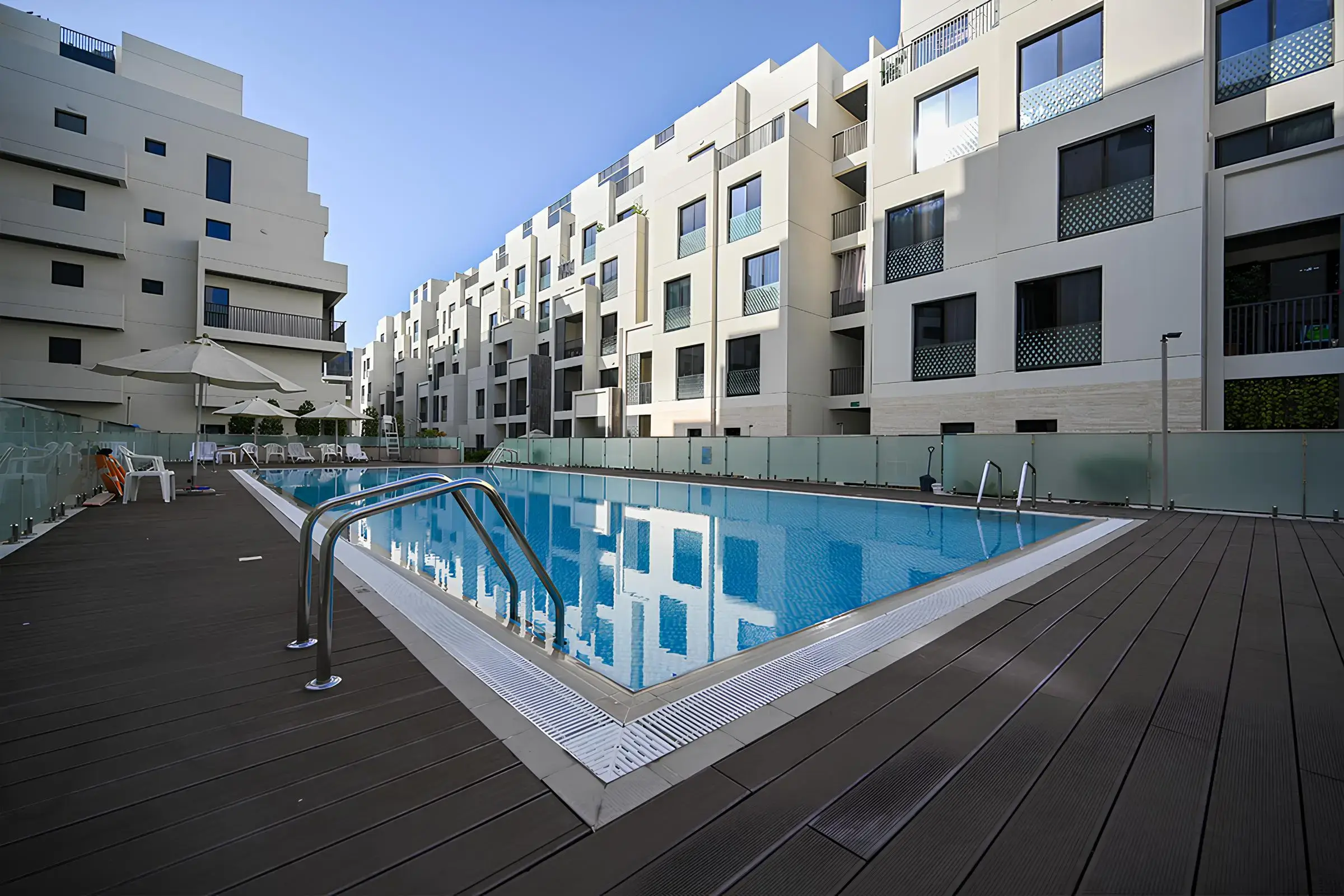 Janayen Avenue is a community of low-rise buildings in the Mirdif Hills neighbourhood. Residential objects of the complex in the style of avant-garde French architecture are represented by duplexes with 3-4 bedrooms, as well as apartments with the number of bedrooms from 1 to 3. The unique feature of duplexes in Janayen Avenue is that they are not arranged in a row, but vertically. This feature provides privacy for the residents while still meeting the standards of an upscale community. Janayen Avenue residents have access to the following services and amenities: BBQ area, swimming pools, indoor parking, children's play areas, multi-purpose community centre, fitness centre, retail outlets, medical centre, authentic restaurants and cafes, outdoor sports courts, 24-hour security and concierge service. The nearest public transport stop is a two-minute walk from the residence. Nearby Janayen Avenue infrastructure and entertainment facilities include Aswaaq Mall, Mirdif 35 and Arabiam Centre, HMS Mirdif Hospital, Dr Samiha Lutfi Pharmacy, Al Mawakeb School and GEMS Royal Dubai School, Cheeky Monkeys Entertainment Centre. Dubai International Airport is about 10 minutes away by car or taxi, and the emirate's main airport can be reached in 35 minutes by public transport.