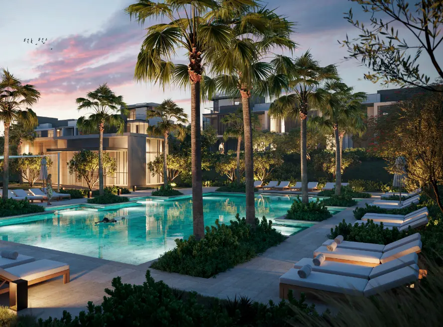 La Tilia presents modern townhouses with elegant interiors. The three-bedroom residences feature spacious, open floor plans with clean lines and modern finishes, while the 4-bedroom homes feature a double-height ceiling in the main living area, designed for a sense of serene space. Mansions with panoramic windows and stunning garden views, connected by green pathways to the beach lagoon at the center, create the perfect balance of privacy and openness to provide tranquility and inspiration.