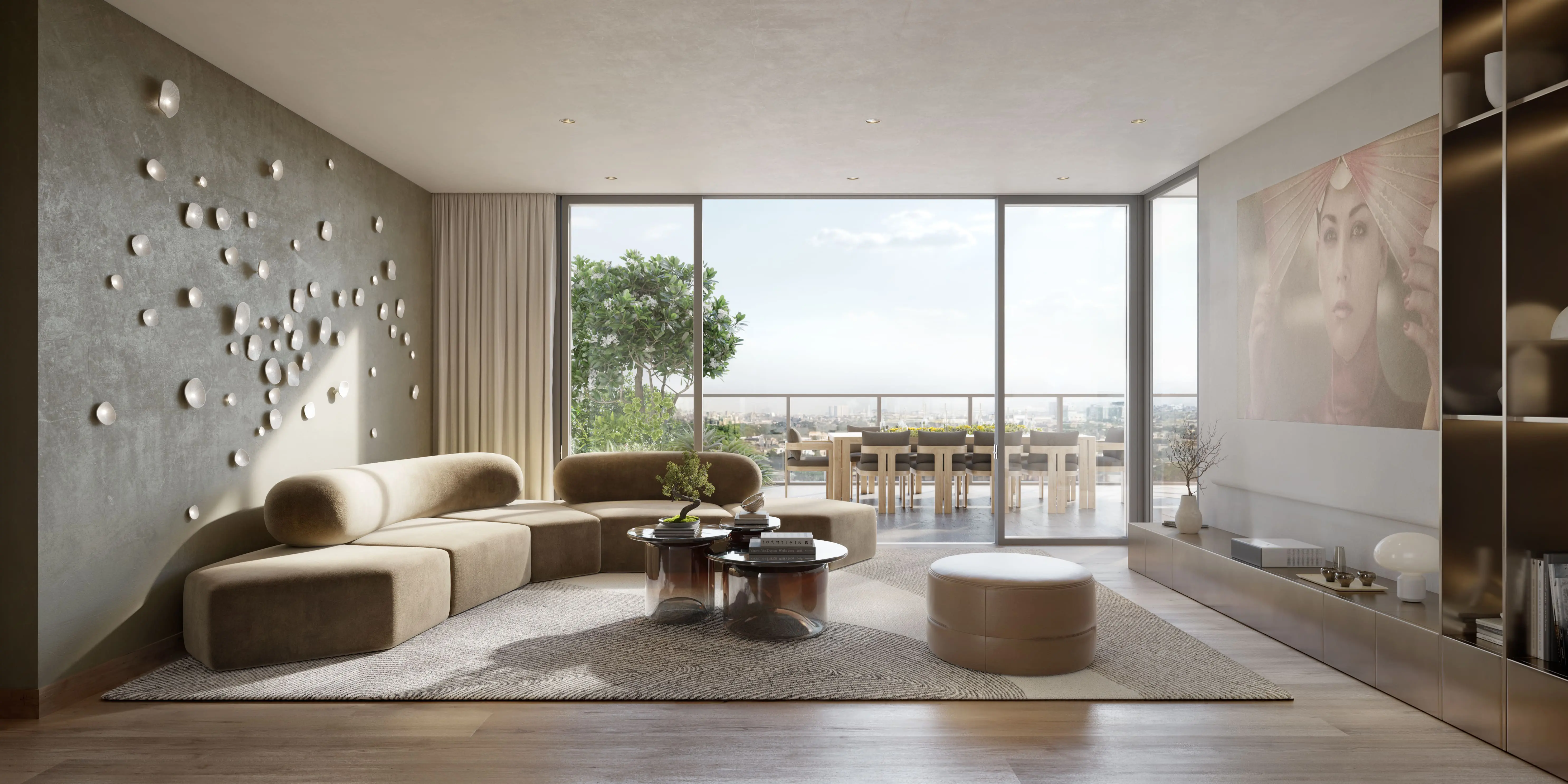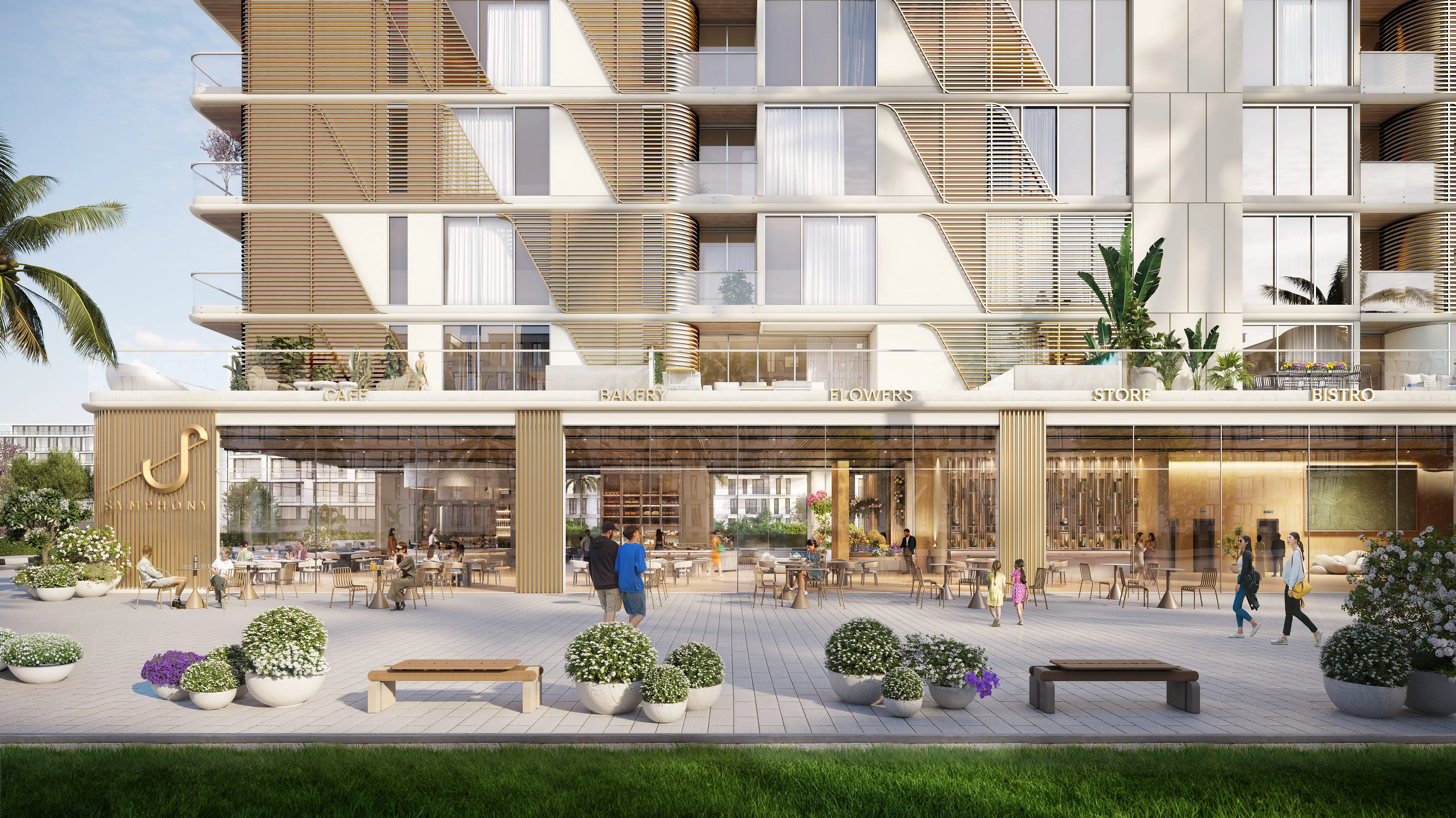 Symphony by Chaimaa is a residential project from the developer Chaimaa Holding, located in the picturesque Majan district in Dubai. The exterior of Symphony by Chaimaa features a modern design that combines elegance and functionality. Curved shapes and panoramic glazing create a dynamic and attractive silhouette and fill the interiors with natural light, while the geometric lattice facade provides privacy. The facades of the buildings are complemented by elements of vertical landscaping. The building includes two basement levels, a ground floor, 8 residential floors, and a roof with amenities. The project offers 1 and 2 bedroom residences with impeccable design, combining luxury, innovation and thoughtfulness. The interior spaces are carefully designed and created for refined tastes. Every element of the interior is a masterpiece reflecting success. The apartments are decorated with travertine and other high-quality materials. Symphony by Chaimaa residents have access to: a restaurant, a cafe, a lounge, a fitness center, a swimming pool, a yoga terrace, a music room, as well as retail outlets, including a shop, bakery, flower shop and bistro. Due to its location, Symphony by Chaimaa provides easy access to Dubai's main attractions, including shopping malls, restaurants, educational institutions, business centers and the international airport.
