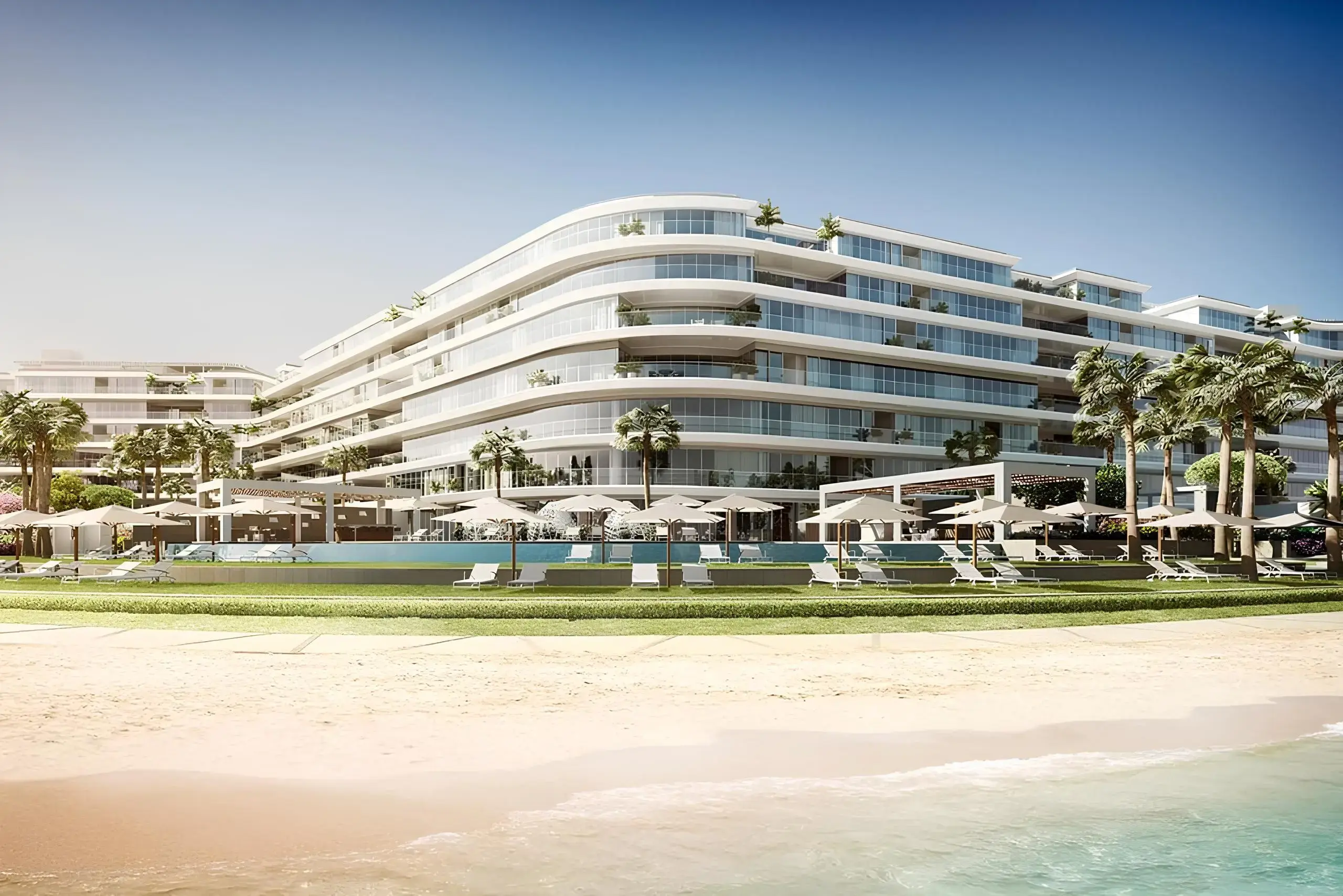 The exterior of the complex is designed in a minimalistic but luxurious style typical of elite coastal architecture. Apartments with 2-5 bedrooms offer panoramic views of the Persian Gulf and Dubai skyline thanks to the thoughtful design of the buildings. For connoisseurs of luxury, there are two unique penthouses and three duplex penthouses with panoramic terraces.