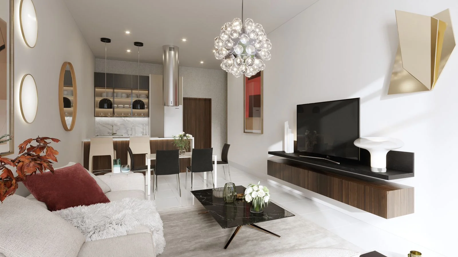 A selection of contemporary 1–3 bedroom apartments is available for purchase, featuring thoughtful layouts, spacious interiors, and panoramic windows with captivating views of the city and the sea. The interiors are designed in light tones, combining elegant aesthetics with advanced technologies, including a smart home system.