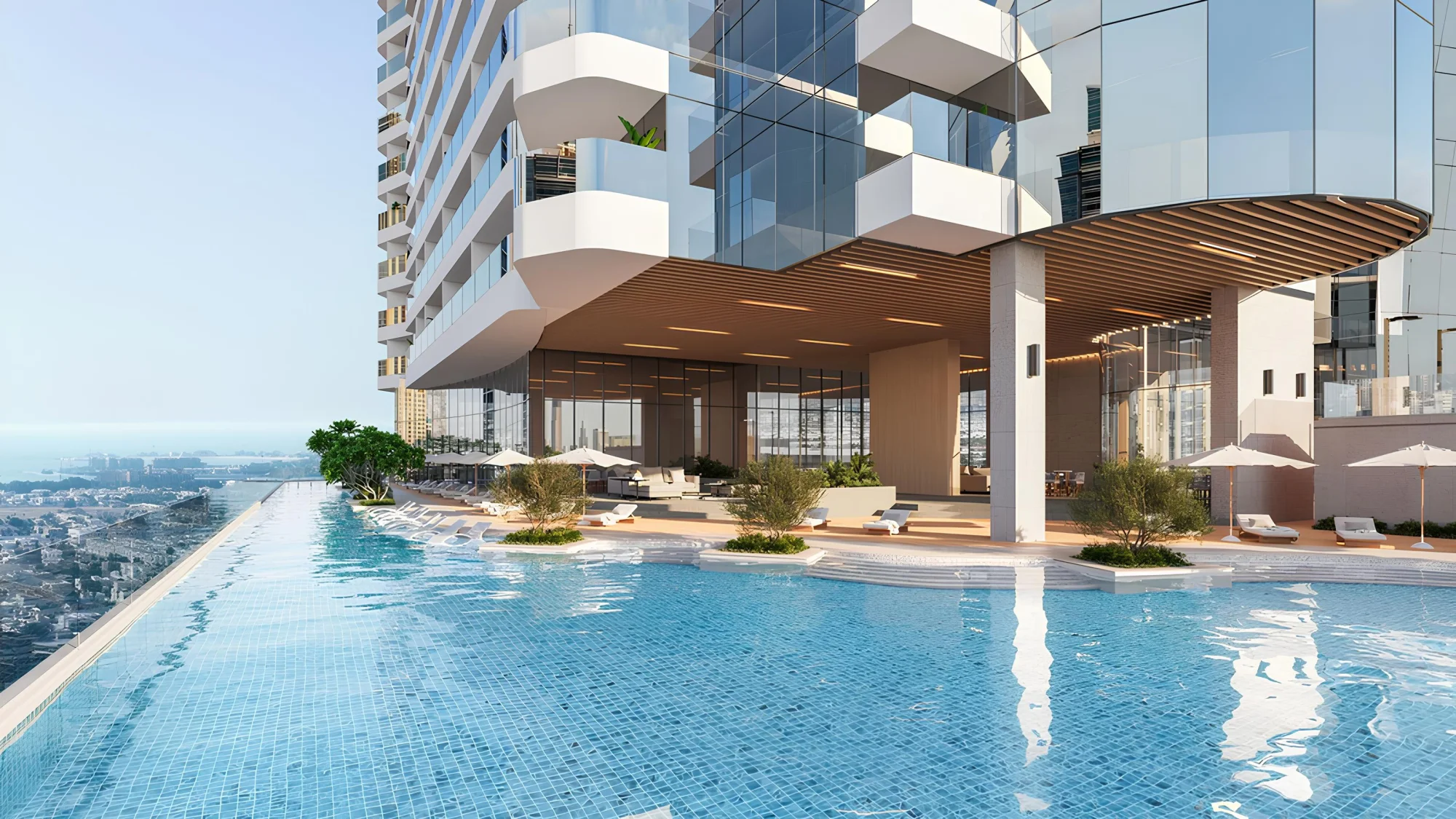 Al Habtoor Tower is a premium residential development by Al Habtoor, located in Business Bay along the Dubai Water Canal. The project stands as a new architectural landmark of Dubai — an 82-storey tower that includes a ground floor and eighty-one residential floors. Clean vertical lines, glass façades, and wave-inspired elements emphasize the dynamic character of the building and create a sense of movement.