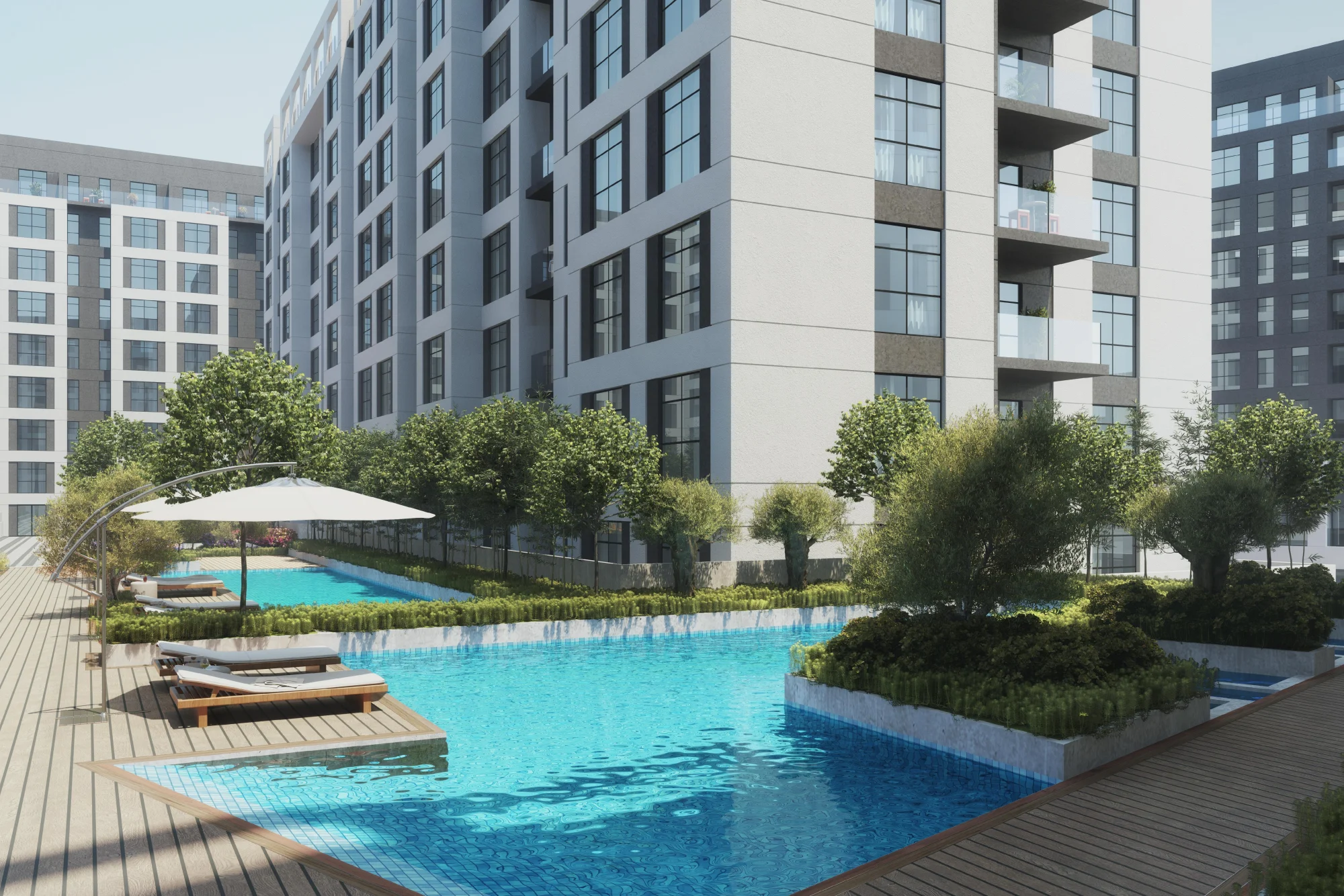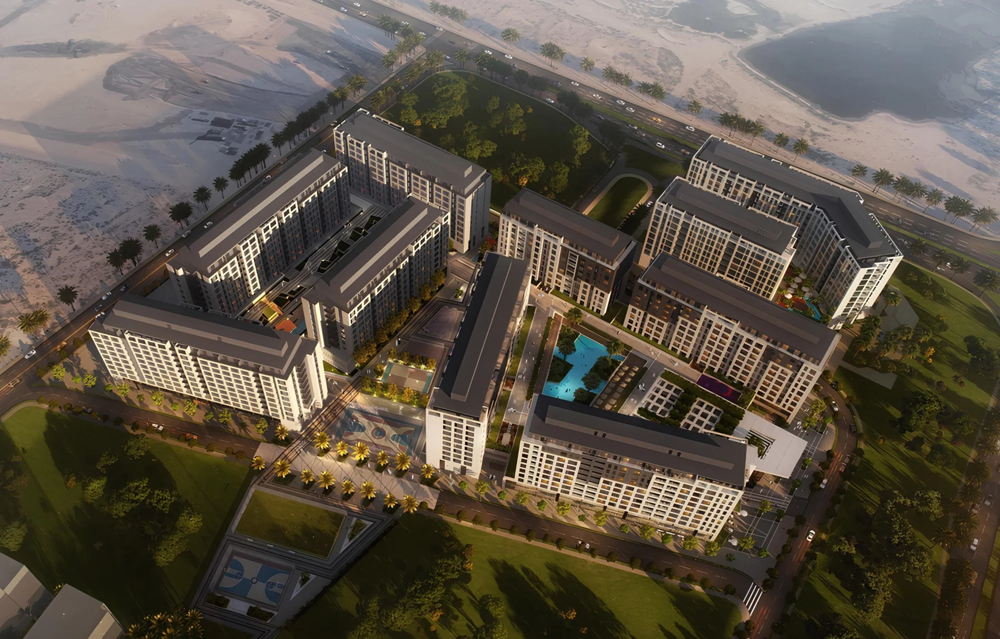 Numerous amenities and services are available to residents, including swimming pools, fitness centers, children's playgrounds, barbecue areas and walking paths. There are shops, restaurants and cafes on the territory of the complex, providing comfortable accommodation.