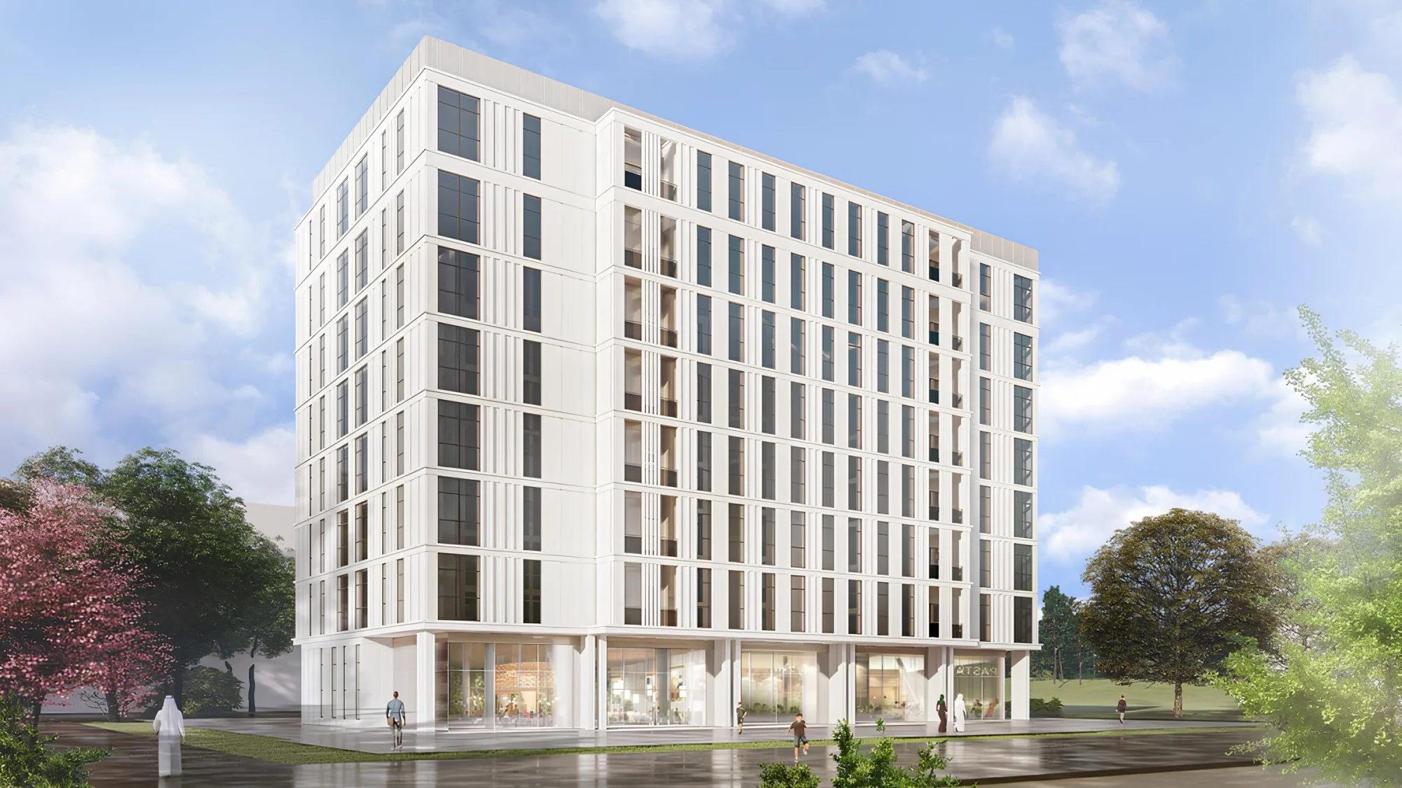 The complex includes 33 buildings, consisting of ground floors and 7-9 residential floors. The exterior of the buildings of the project is characterized by a modern and elegant design. The buildings are organically integrated into the landscape, complemented by beautiful greenery and water elements, creating a calm and refreshing atmosphere. The project includes studios and apartments with 1-3 bedrooms, as well as commercial premises. All residences are decorated in a modern style.