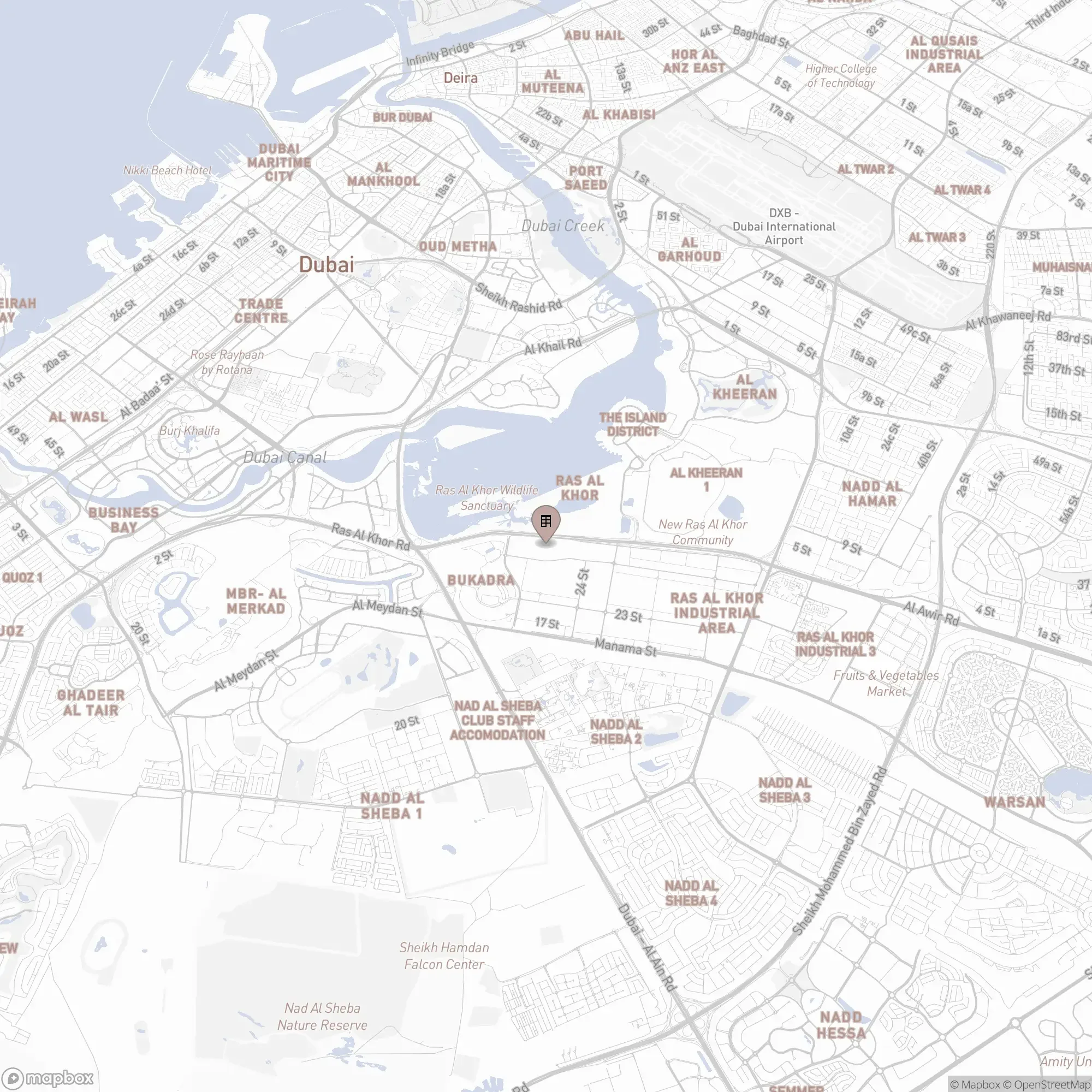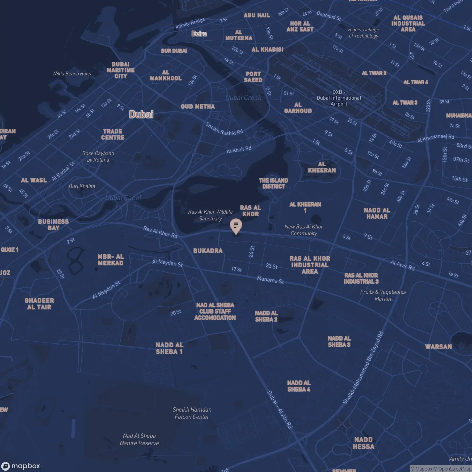 The complex is located near important locations in Dubai: Dubai Design District is about 5 minutes away, Dubai Airport and Downtown Dubai are about 10 minutes away by car, and Dubai International Financial Centre is about 15 minutes away. Meydan Racecourse and Ras Al Khor Wildlife Sanctuary are located in the immediate vicinity and can be reached in a few minutes.
