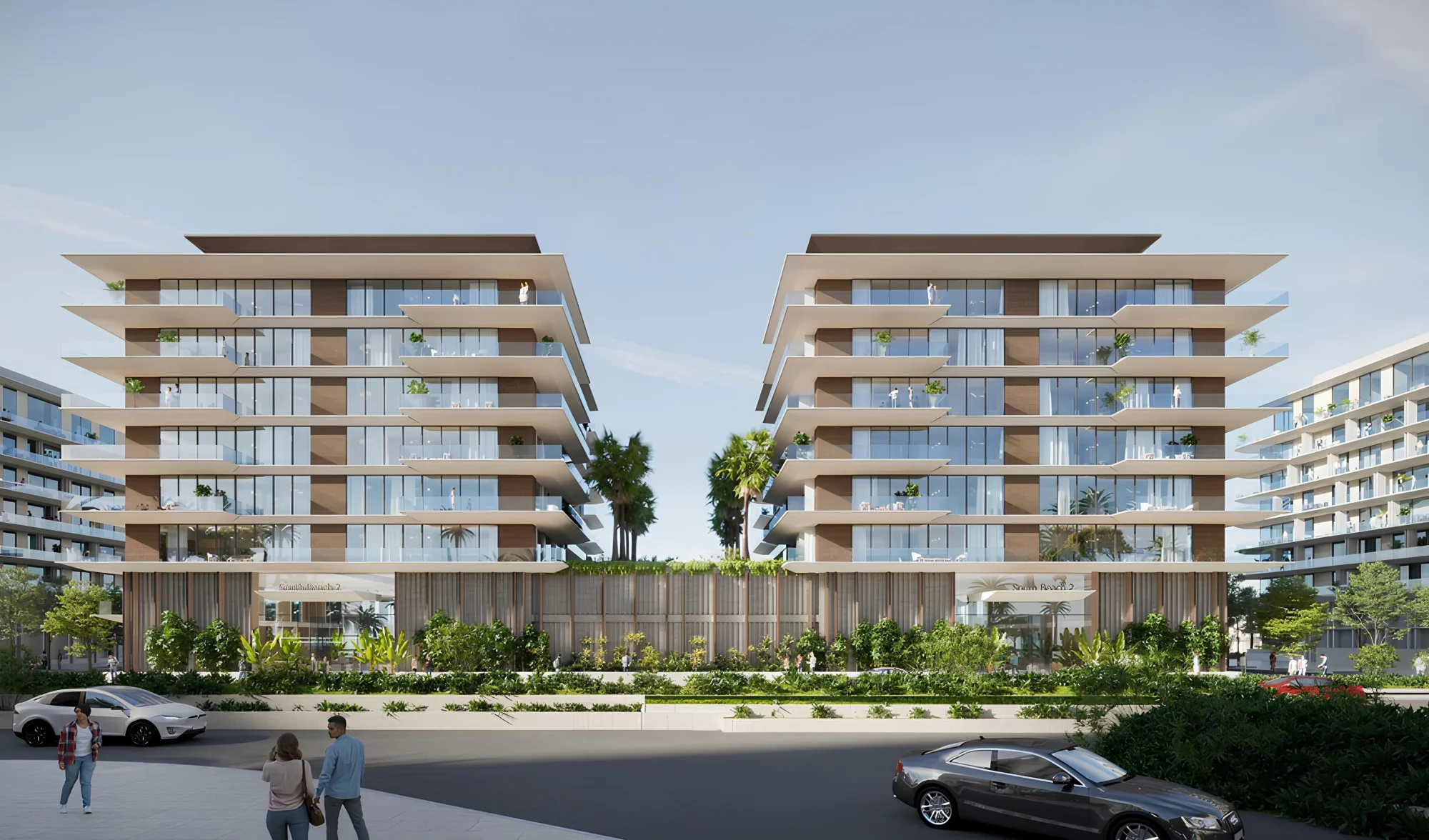 The complex, consisting of 20 separate buildings, including a ground floor, a podium and six residential floors, offers a wide range of apartments, from stylish one-bedroom options to spacious three-bedroom residences, as well as duplexes with 2-3 bedrooms.