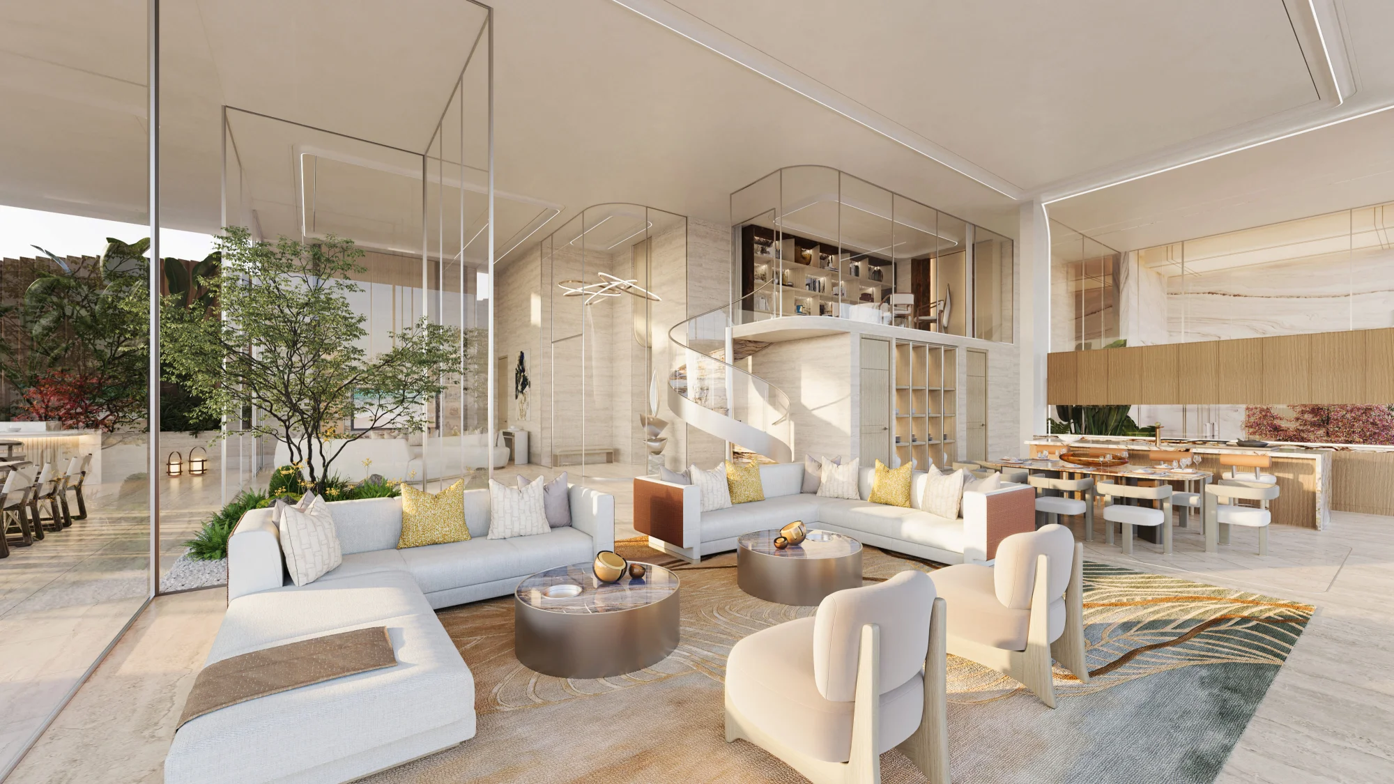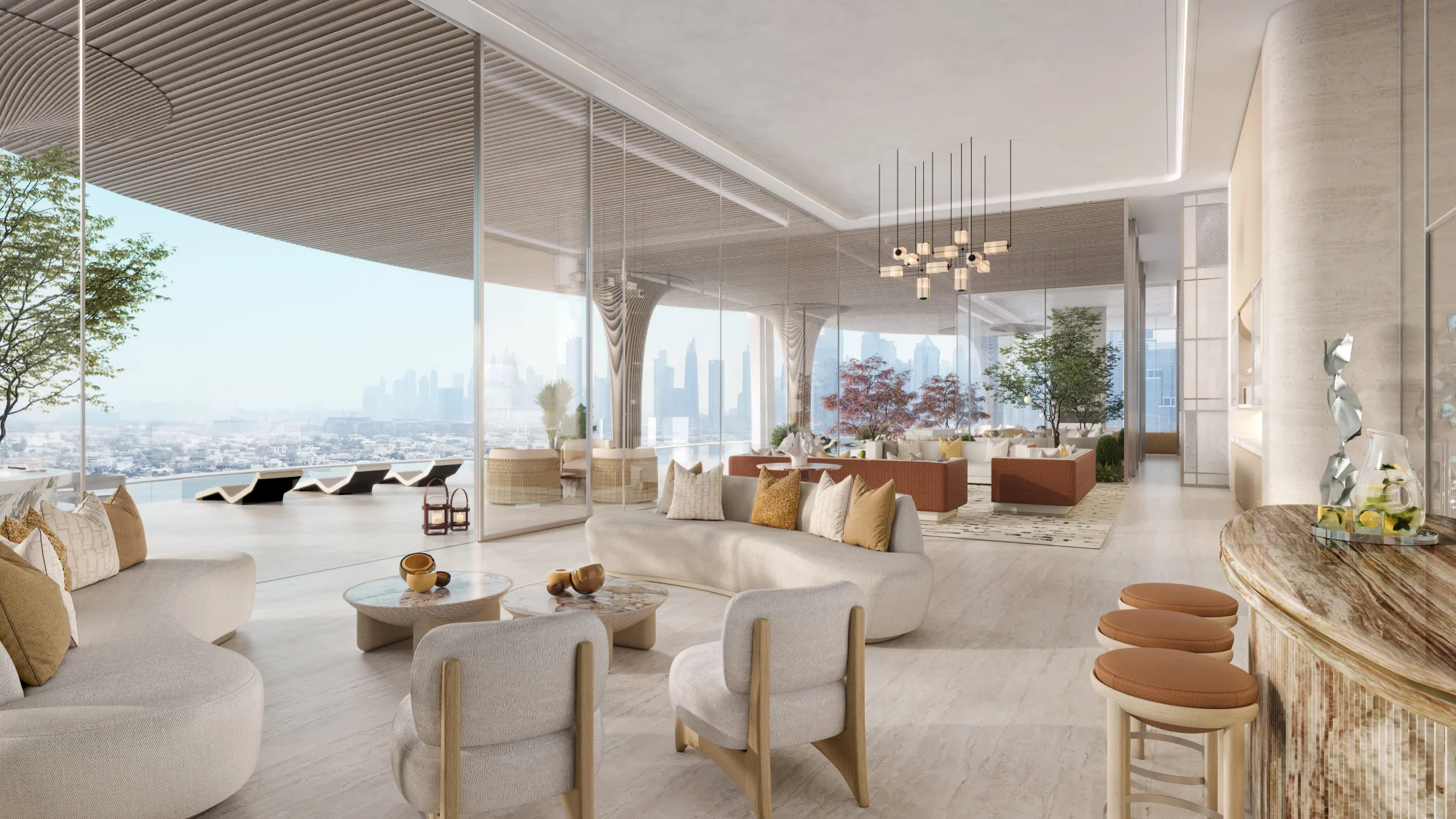 The building includes a ground floor and 16 residential levels and offers luxury three-bedroom penthouses, 4-5-bedroom Sky Villas, six-bedroom Sky Mansions, as well as exclusive six-bedroom Sky Palaces. All apartments have wide layouts, terraces and private elevators. Panoramic windows provide natural light in each unit of the dwelling, and sliding doors provide an open connection to the main living rooms and smooth movement between internal and external spaces. The interiors of Casa AHS are imbued with elegance and modern style. High-quality materials and innovative design solutions create an atmosphere of luxury and sophistication. Every detail here is thought out to the smallest detail to ensure an impeccable level of comfort and style.
