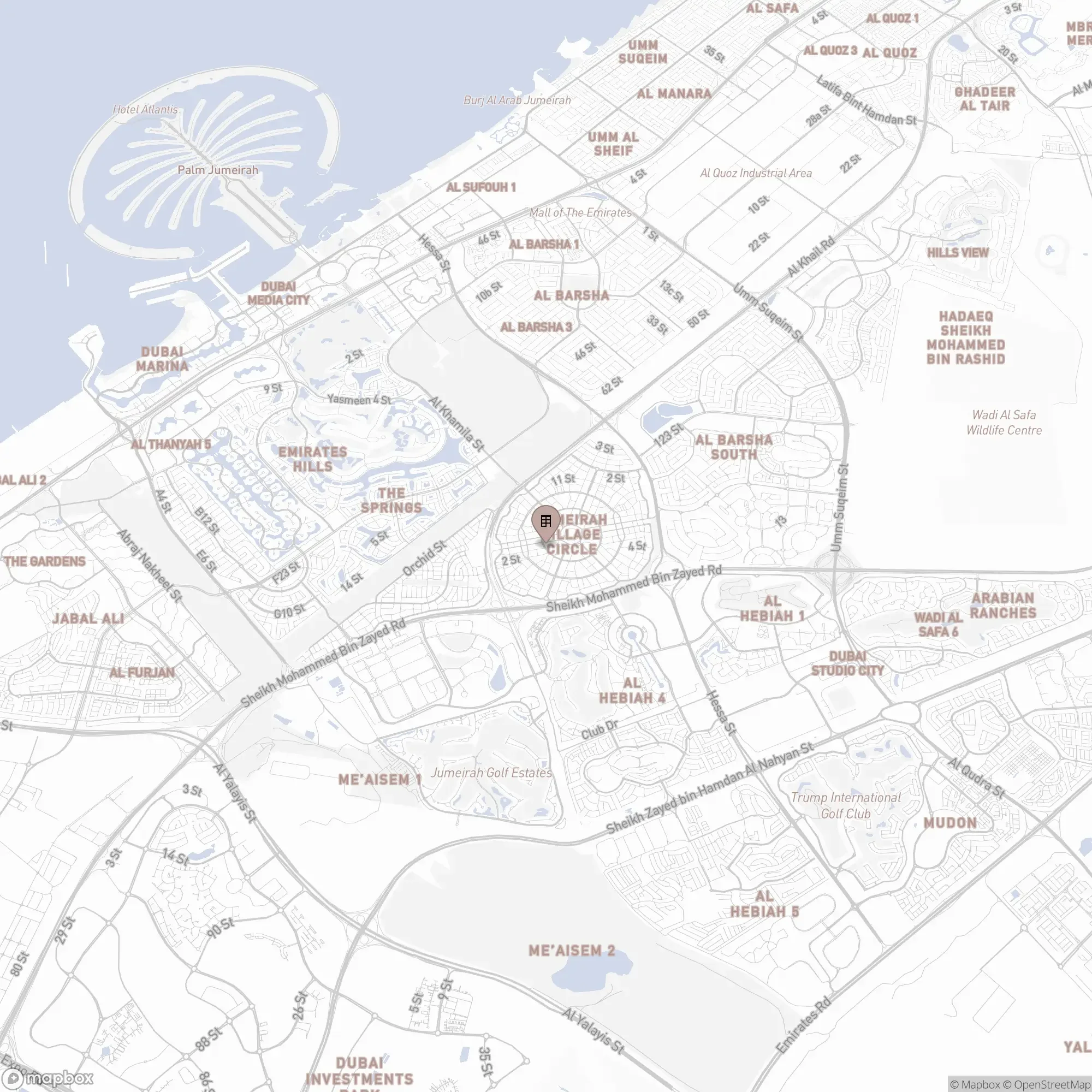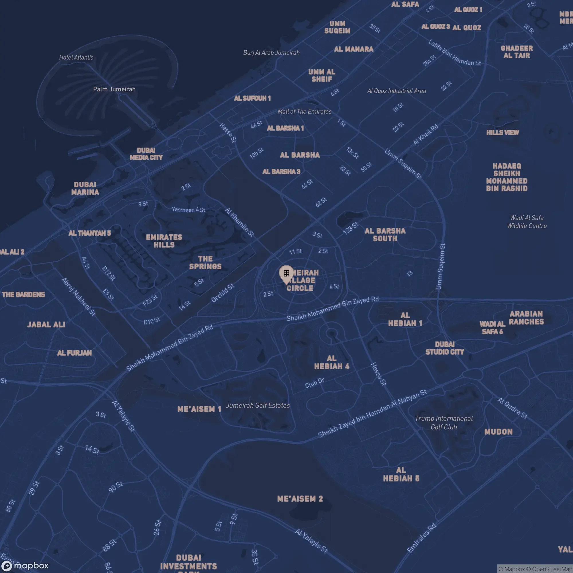 Lumina Vista's Jumeirah Village Circle location provides easy access to Dubai's diverse social amenities, including schools, shopping malls, restaurants and entertainment venues. Dubai Hills Mall is just 15 minutes away, Palm Jumeirah is 20 minutes away, and Dubai Marina is a 24-minute drive away. Dubai International Airport is about a 24-minute drive away.