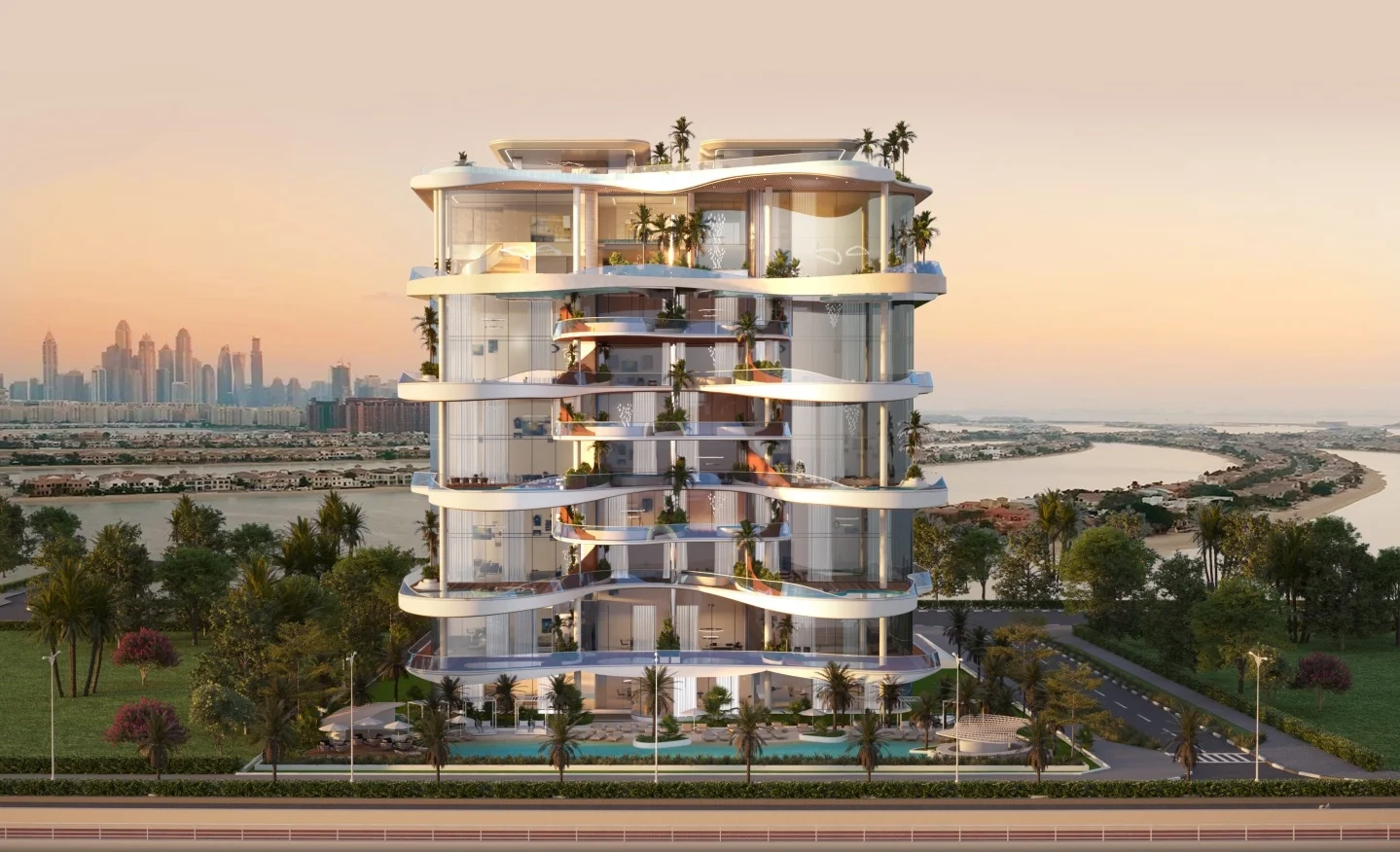 One Crescent is an elite residential complex from the developer AHS Properties, located on the largest artificial island in the world – Palm Jumeirah, Dubai. This island, located in the Persian Gulf, is shaped like a palm tree and offers a unique lifestyle combining luxury, privacy and comfort.