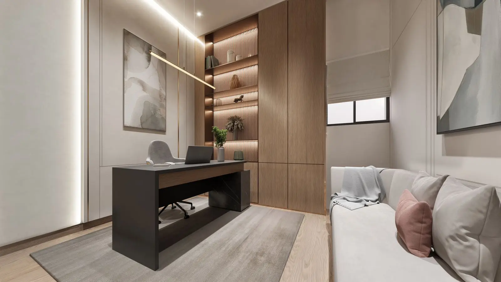 Palatium Residence offers studios and apartments with 1-3 bedrooms, with first-class finishes, porcelain tiles and fine woodwork. The residences have high ceilings and panoramic windows that create a sense of spaciousness and fill each apartment with natural light. All housing units are equipped with Smart Home automation and kitchen appliances.