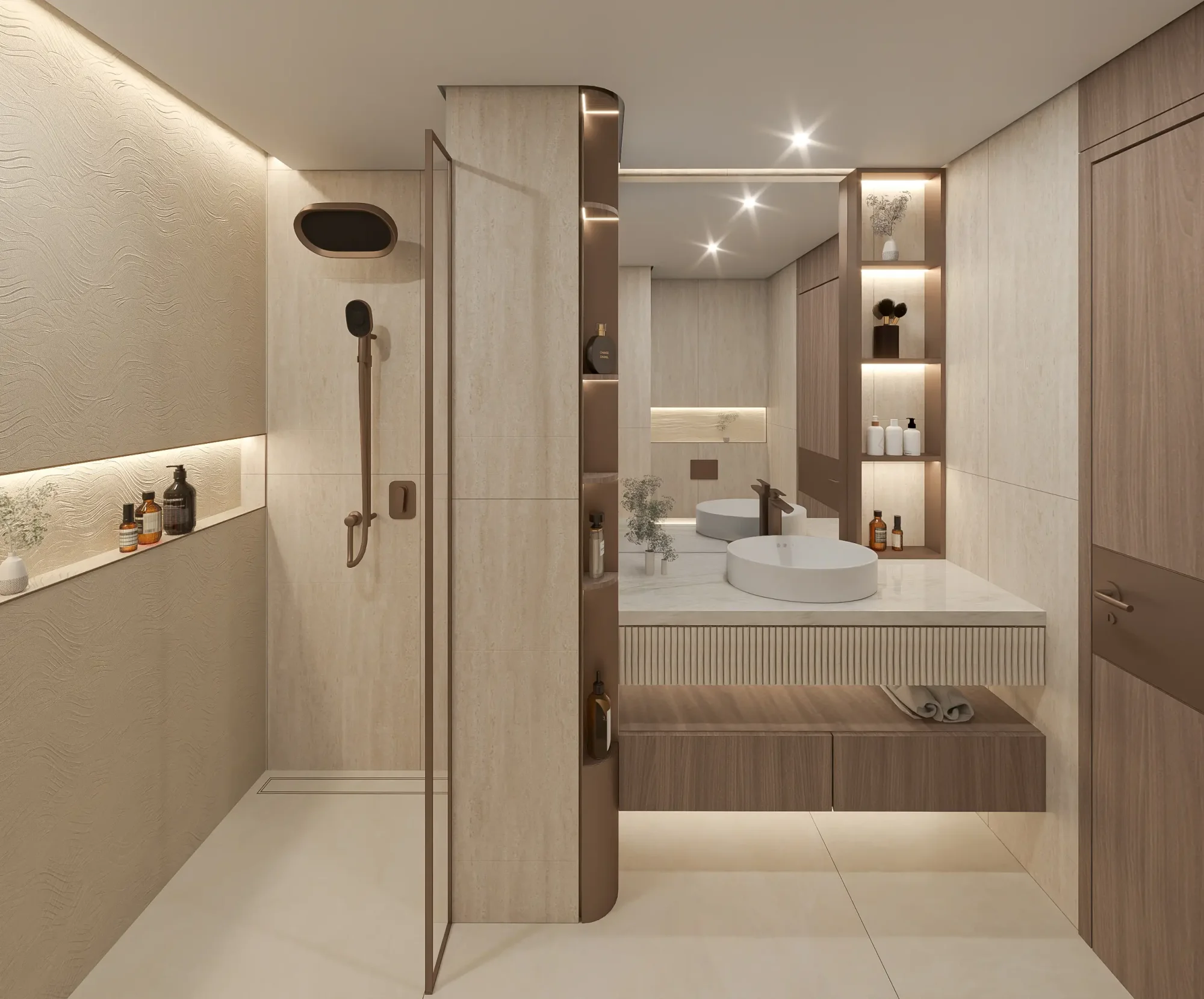 Vestoria Bay is a residential complex by Ahmadyar Developments, located in the Dubai Island area. The project consists of a ground floor, two podium levels, and eight residential floors. The architecture combines modern style and practicality, creating a comfortable and elegant living space.